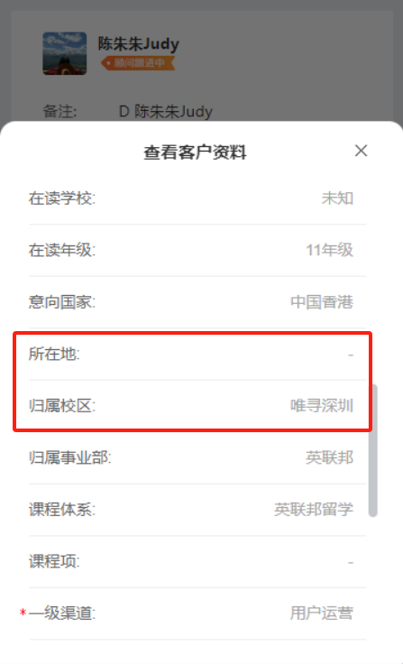 用户通过小商店后台下单时,手机号入库会自动匹配【归属校区】,匹配逻辑为手机号归属地,请显示在企微侧边栏的【所在地】,并打上对应【城市】标签。