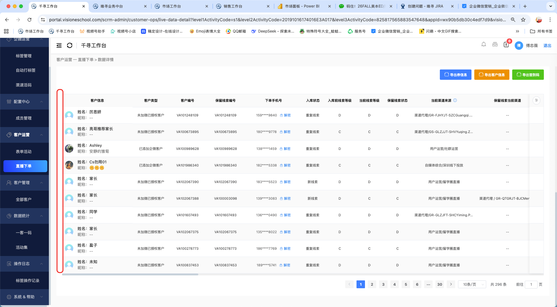 需要在千寻工作台-直播下单页面创建下发市场TMK线索的功能